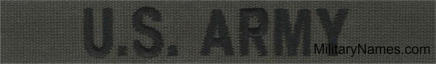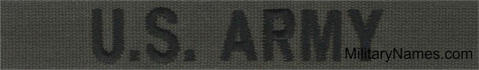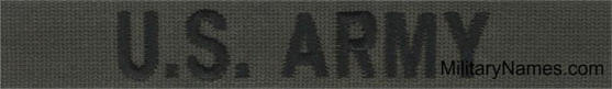 A 1 inch tall olive drab name tape embroided with black ¾ inch